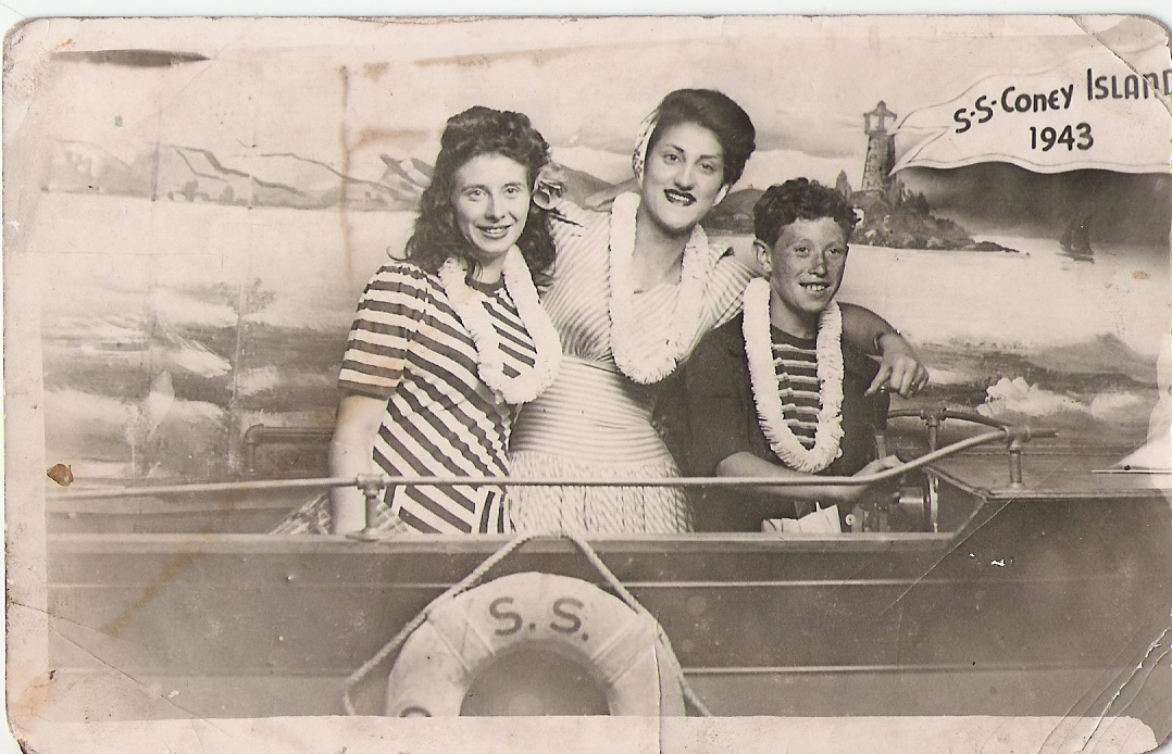Looking at this photograph I can almost smell the salt air and see the boardwalk. I think that since the Doran clan originally comes from Belfast, North Ireland they are hard-wired to love the ocean. Here in this delightful photograph from 1943, siblings Margaret and William Doran are book-ends to Margie’s best girlfriend at Coney Island.