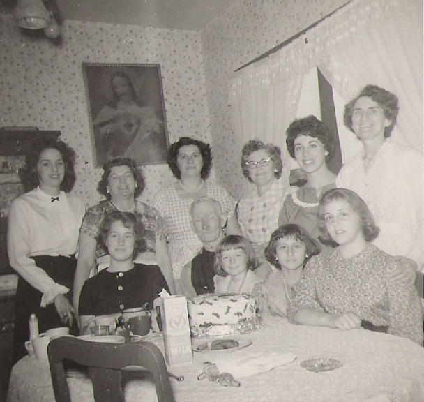 I have only vague memories of this day, but I do have very happy memories of my grandfather. Some of my cousins used the Polish word for grandpa, dziadek, but my siblings and I usually simply called him grandpa. My sister noticed that all of the ladies standing behind Grandpa have now passed on, and sadly none of them came close to living to that magical number – sto lat. From the left standing are: Joy, his daughter-in-laws Jean and Stefania, his daughter Genevieve, Bettyann, and his other daughter, Mary. Sitting in the front are Rose, Maryann (sitting on my Grandpa’s lap), Veronica, and Louise.