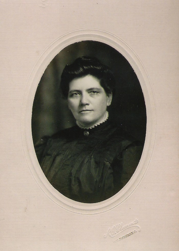 This beautiful portrait of Sarah Ophelia Rose Barnes (1863-1936) came to us from a second cousin, Betsy Coleman. It was taken in Goldsboro, Wayne County, North Carolina at the A.O. Clement Photography Studio. The family thinks it was taken around the time Ophelia’s daughter, Bessie Pauline, married Thomas W. Coleman in 1910. One way to try and date pictures is by searching for a biography of the photographer. Albert O. Clement was a well-known photographer in Goldsboro in the early 20th century, working there from 1904 until his death in 1936.