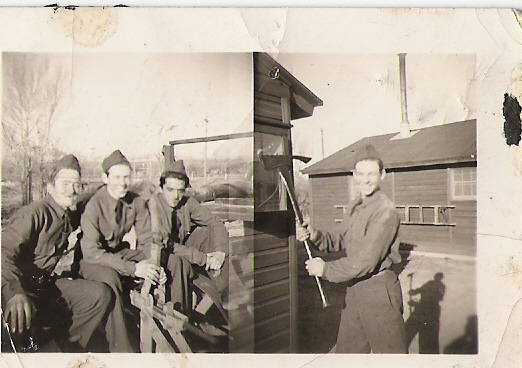 This photograph of John J. Doran (1923-1944) was most likely taken in Montana while he served with the Civilian Conservation Corps during the Depression. It’s a very unusual picture, because it seems to be two separate photos that were developed as one. On the left side, Johnny is shown sitting in the middle with two buddies. Then, in the photo on the right side he is shown standing holding an axe. I love the large shadow he cast on the ground, on what must have been a sunny day. This picture is only 2″ by 3″ and it was in an album with a few other photos of Montana next to it. Johnny looks so carefree and happy-go-lucky with an infectious grin, and that’s how his siblings remembered him.