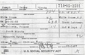 Although this obituary for Joseph Mirota is short, most of the facts are correct. He was also a farmer, but that isn’t mentioned. Funeral prayer cards and obituaries are an excellent way to confirm dates and names when researching. Another excellent resource are the records available under the Freedom of Information Act – FOIA and Social Security records that can be ordered for anyone born over 120 years ago. The Social Security Death Index (SSDI) contains records going back to 1937, but 98% are from after 1962. For someone like Joseph who worked for the railroad, also look under Railroad Retirement Board Records – the records there are from after 1936 – and are also available under the FOIA.