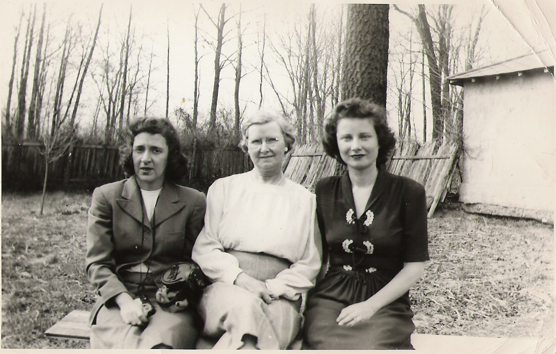 Helen Catherine Barnes (1881-1973) with daughter-in-laws, Evelyn and Barbara. Photo taken on Mother’s Day 1943.