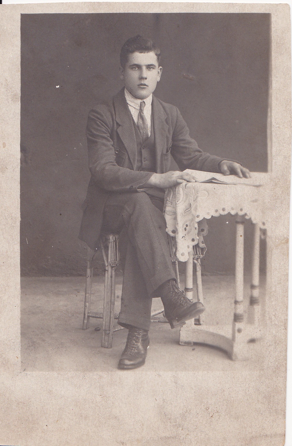 When his mother emigrated from Pławna in 1912 to the United States, she put on her arrival papers at Ellis Island that she was going to her brother, Joseph Mirota, in Cherry Valley, PA and that her her next of kin was her mother, Margaretha Mirota. Possibly her son was raised by his grandmother, or other extended family. The back of the photo shows elegant handwriting in Polish that loosely translates, “For the most dear uncle and uncle’s wife, I give you this sacrifice of a picture*.” It was sent to his uncle Jozef Mirota and his wife Zofia Sczerba Mirota in either Cherry Valley, PA or Whitehouse Station, NJ.