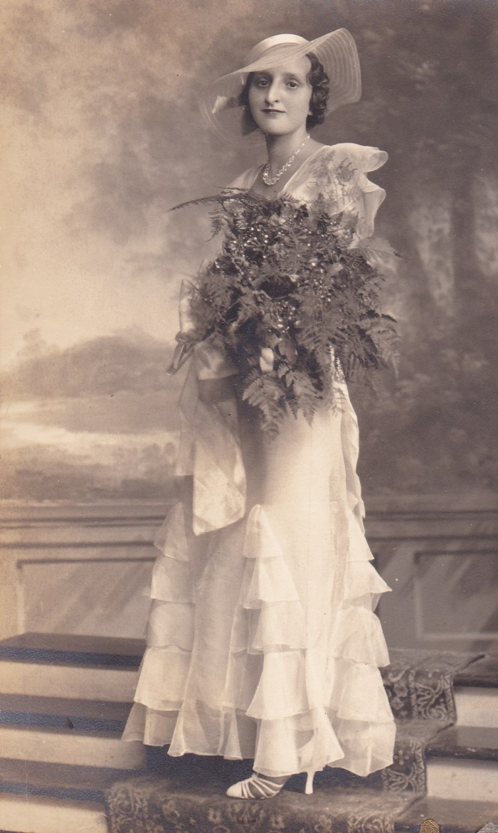 Jennie wrote about the preparations for the wedding and reception, in letters also saved by her children. Her mother, Sophia, had worked so hard, yet was so happy to have the house filled with family and friends. Jennie had worked as a maid for a few years, saving her money, but then lost most of it when her local bank failed. She itemized the wedding costs. “My outfit cost me $39 (the gown was $16.90, the veil $15.95, and shoes $2.44), Mary’s (her sister and maid of honor) cost about $12. The wedding altogether cost too much. It cost Ted around $100.” Here below is a photo of radiant Jennie in her gorgeous gown and veil. To me she always looked like a beautiful Hollywood movie starlet of the 30s with her fashionable bobbed hair and stylish veil.
