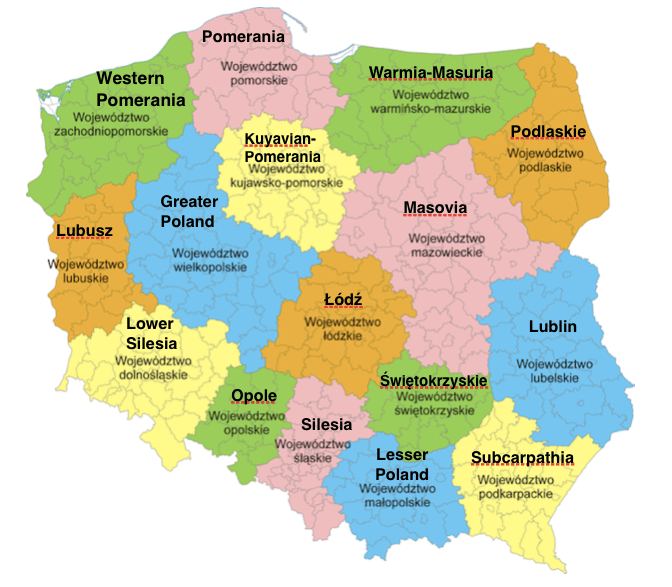 Map download courtesy of FamilySearch.org URL https://familysearch.org/wiki/en/File:Poland_map_with_English.png