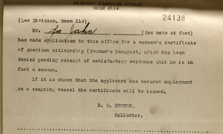 His younger brother John Max Jahn, age 18, also signed up to work on a ship, but not until October 1919, through the USSB. John was employed as a messman on his first sailing. And the 1920 US Census says he was a seaman on a ship. He returned after that to work in the bakery. John did not marry until some time between 1942 and 1950.